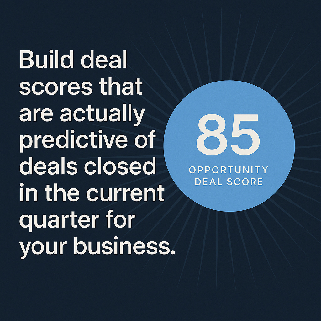 Forecast accuracy is one of the most important challenges for commercial teams. Sales leaders want to know which deals are progressing with true buyer interest and which are at risk of slipping. Traditional activity tracking and legacy black-box scores often fail to deliver clarity. Revenue Operations has the opportunity to build a deal score that is transparent, data-driven, and predictive of current-quarter revenue.