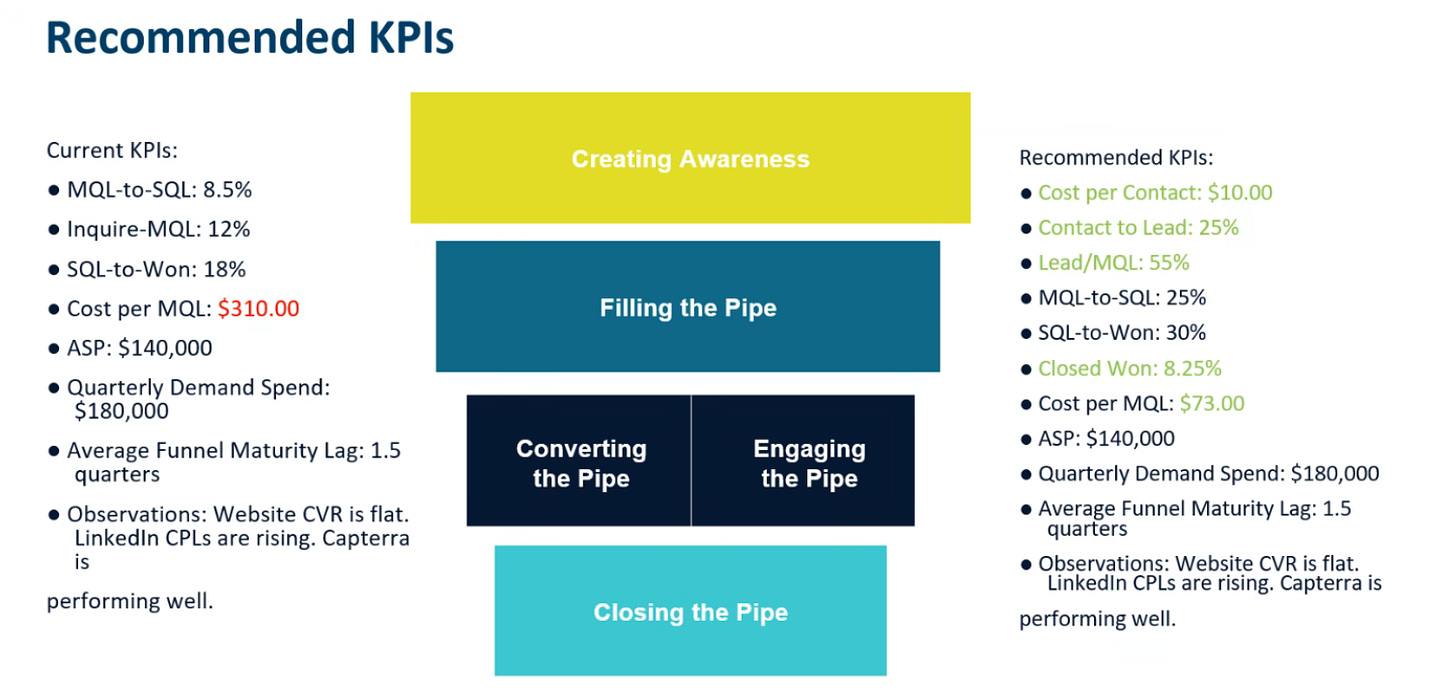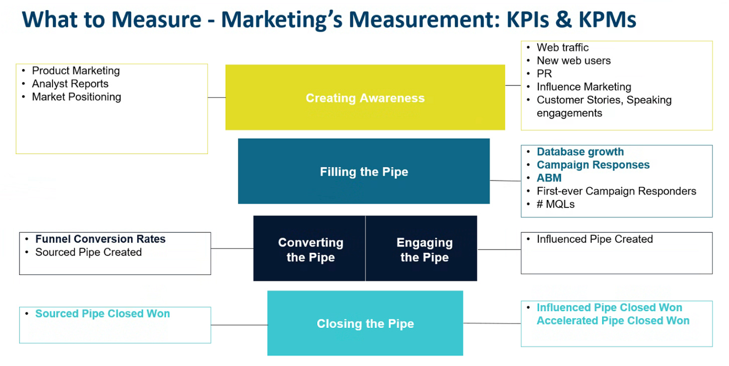 Demand generation strategies are only as good as the systems that support measurement. KPIs tell you how you are performing. KPMs indicate progress toward strategic milestones. Both are needed to manage the funnel effectively.