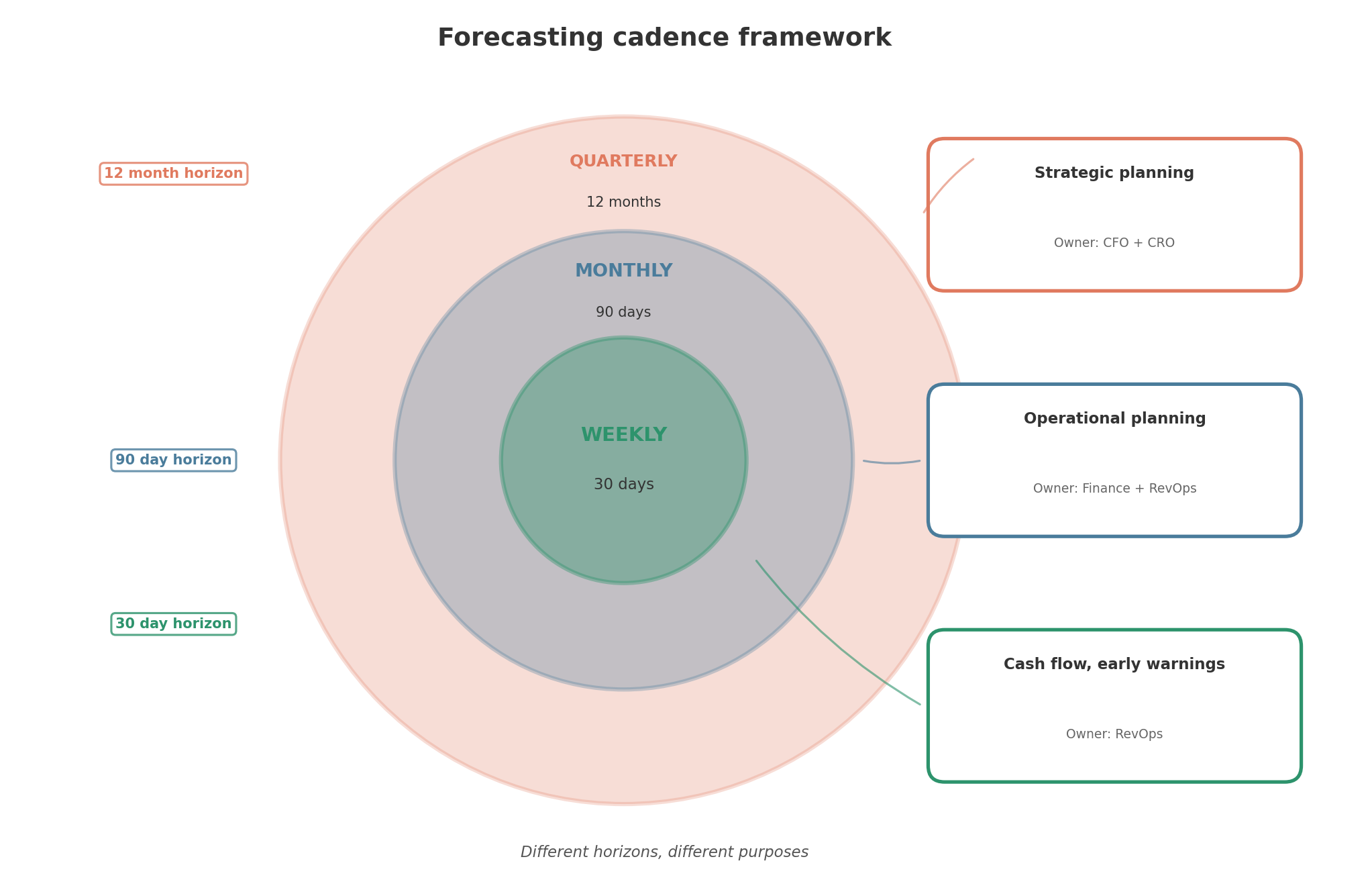 The traditional answer is quarterly, with a mid quarter check in. That cadence was designed for businesses where revenue recognition is predictable and changes happen slowly.