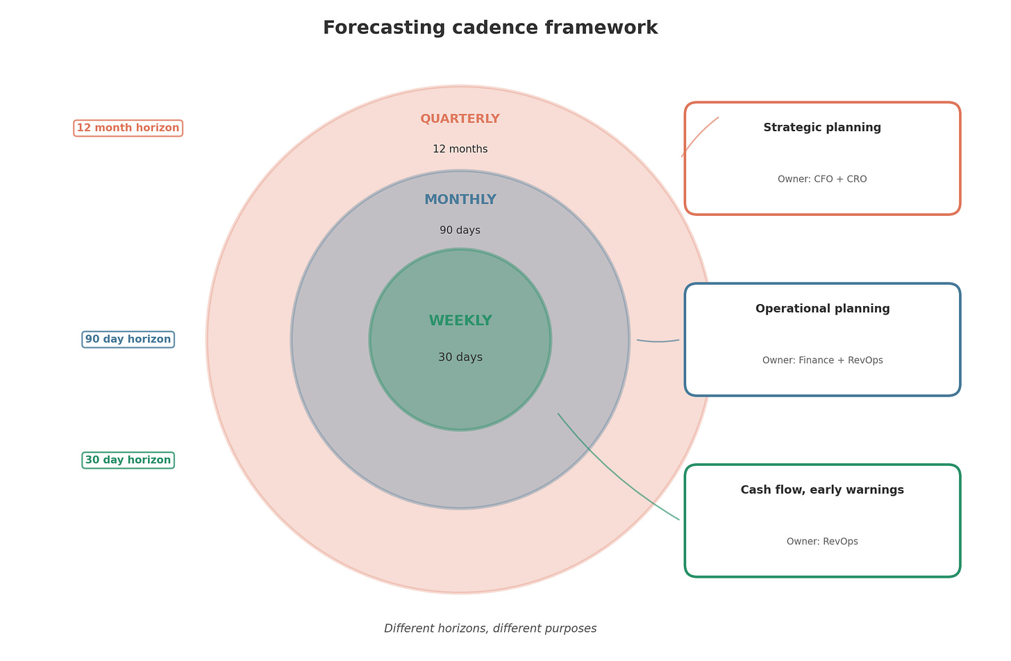 Monthly: Update your 90 day rolling forecast. Incorporate the prior month’s actuals, recalibrate your cohort curves, and adjust your scenarios. This is your operational forecast for hiring, spending, and resource allocation.