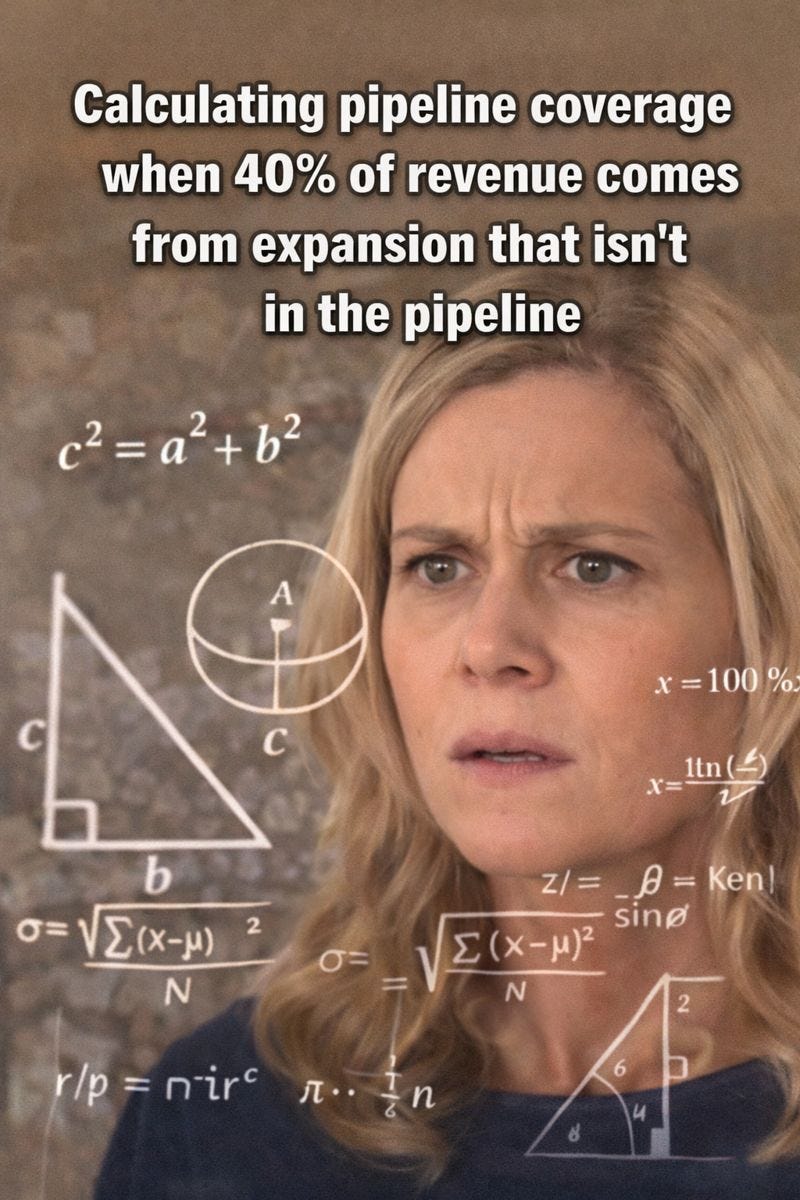 In traditional SaaS, pipeline coverage is straightforward. If you need $10M in bookings and your average win rate is 25%, you need $40M in pipeline. That’s 4x coverage.